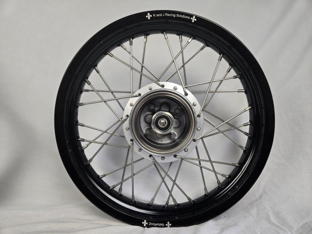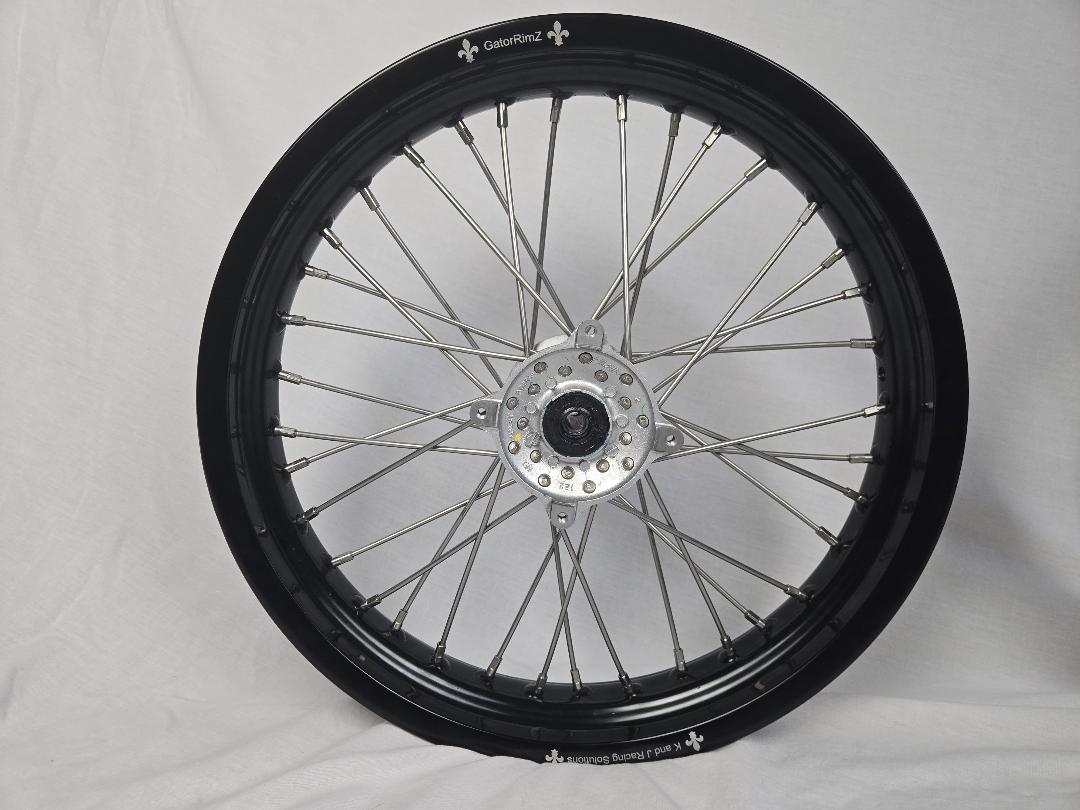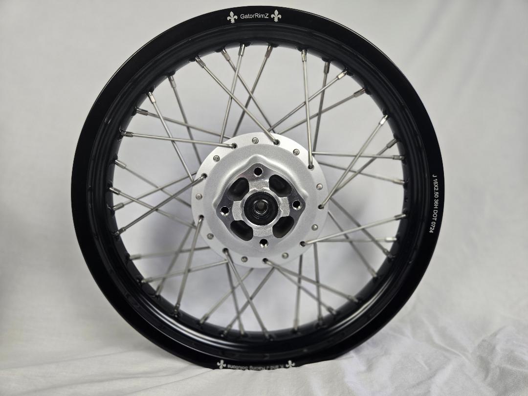 TTR125 front or rear spoked and trued wheel built to a Yamaha TTR125 OEM hub. 16″ by 2.50″ wide black rim.